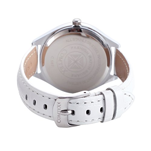 Comtex 손목시계 화이트 피혁 밴드 워치 로즈 골드 귀엽 둥글 시계 레이디스