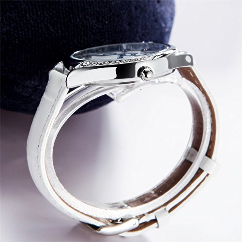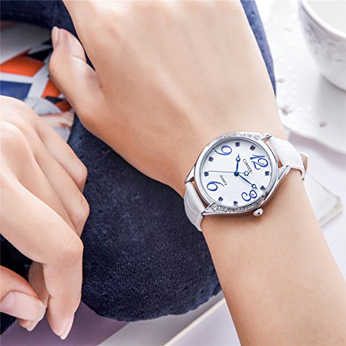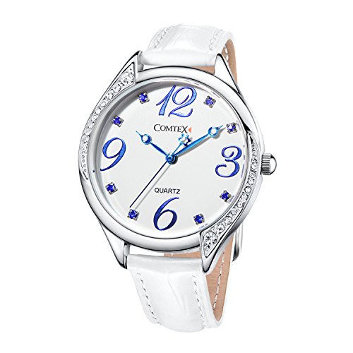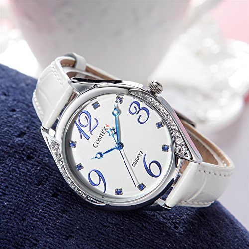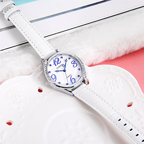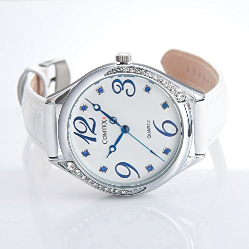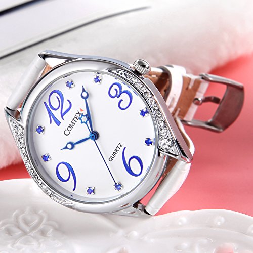 원본상품명: Comtex 腕時計 ホワイト皮革 バンド ウォッチ ロ?ズゴ?ルド 丸い 時計 レディ?ス (ホワイト&ブル?)
