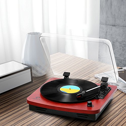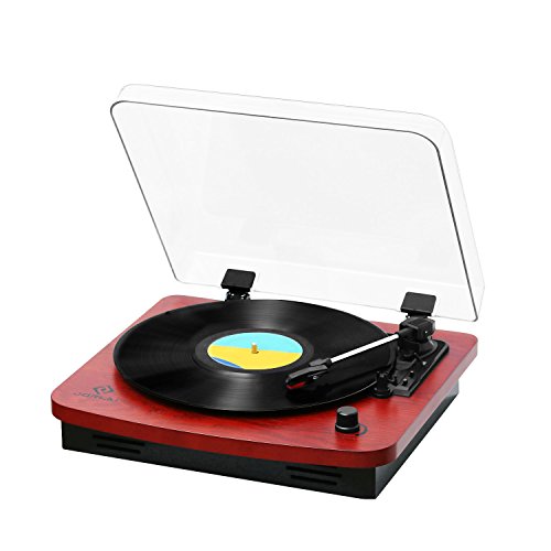 JORLAI Belt-Drive 3-Speed Turntable Vintage Style Record Player with Built-in Stereo Speakers, Vinyl-To-MP3 Recording, Aux Input, RCA Output, Natural Wood