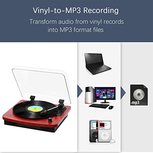 Vinyl-to-MP3 Recording: Transform audio from vinyl records into WAV or MP3 format files via the supplied software CD for later playback on your computer or other mobile devices.