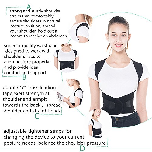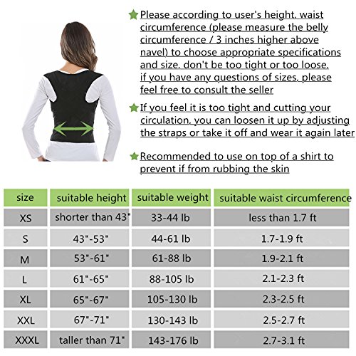 Introduction: Posture is so important for both our health and overall well being, do you sit all day long or do you suffer from poor posture? our posture corrector back brace will help you to stand up straight and look good. Only need 2 hours every day can help to improve your posture, give you perfect body, lots of size choices for both male and female, adults and teenages. Breathable fabric makes back and belly comfortable without constriction and hot feeling. 5 Changes: 1. Keep right sit posture to protect your eyesight, especially for students and office worker. 2. Keep your spine straight to correct habitual hunchback, show your actual height. 3. Hold out a bosom and tighten abdominal for lady, stomach protruding forward and butt sticking out, make you more confident. 4. Balanced center of gravity and leveled shoulders, reduce burden on the shoulder. 5. No bends the lumbar, straight knees and legs. Cleaning Guide: Washing separately to avoid staining, better to wash it by hand to prolong the service life of the corrector. There may be a little smell since it's new and unused, suggest washing it first beforing using.Hang to dry. Please do not put the corrector exposed to the sun for a long time. 0 |