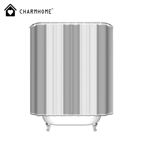 SUPERIOR QUALITY, DURABLE SHOWER CURTAIN:Our shower curtain is made from expertly chosen and thoroughly tested polyester fabric, which is made to withstand moisture-rich bathroom environments. Water-repellent printed fabric shower curtain with a gray stripe pattern.