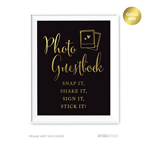 Andaz Press Wedding Party Signs, Black and Metallic Gold Ink, 8.5x11-inch, Photo Guestbook Snap It, Shake It, Sign It, Stick It, Polaroid Sign 1-Pack
