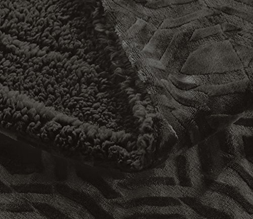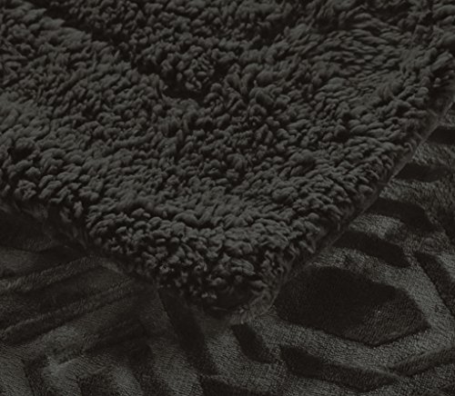 All American Collection New Solid Plush Throw Blanket with Sherpa/Borrego Backing Queen/King Size (Black)