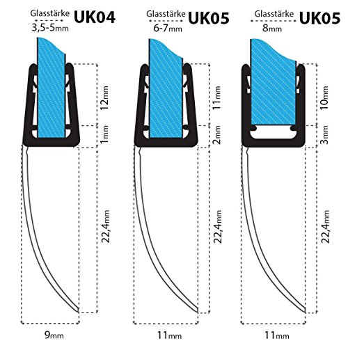 STEIGNER Frameless Shower Door Bottom Seal UK04 For 0.137 Inch To 0.195 Inch (3,5mm To 5mm) Glass Thickness 3/16" LENGTH 39.30 Inches (100cm)