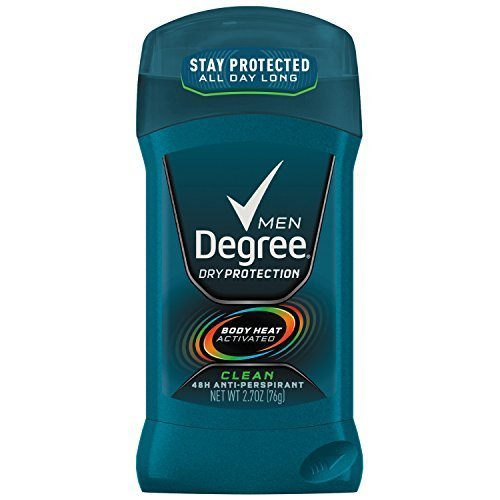 Degree Men Clean helps keep you fresh and dry, no matter what. A men's antiperspirant that offers 48 hour dry protection with a clean neutral scent and a light hint of citrus. Whether you're having a long day in the office, playing sport outdoors or working out in the gym you can be confident you'll be protected from sweat and body odor. Designed by experts to be activated by your body heat, Degree Clean is a men's antiperspirant deodorant stick that works as hard as you do, keeping you dry when you need it most. As well as being highly effective, Degree Clean has a clean neutral scent that will keep you fresh all day. Keep comfortable and confident thanks to Degree Clean's long-lasting formula that is tough on sweat, but not on skin. It comes in an easy-to-use applicator stick - you simply turn the dial to raise the stick, apply a thin layer to your underarms and you're ready for anything. Stay dry, cool and confident thanks to Degree Men Clean. A men's antiperspirant stick that offers 48 hour dry protection with a clean neutral scent and a light hint of citrus. Body heat activated Degree Men Clean gives you long-lasting protection when you need it the most. Degree. It won't let you down.Feature