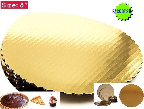 Cake Board Circle Sturdy gold Corrugated Cardboard,good for Cake Pizza and Pie and more 100% Food Safe (8", Pack of 20)