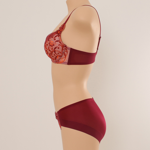 엘레강스한 자수를 컵 아래부분에 배치하여 가슴을 감 싸 안아주도록 하였으며,