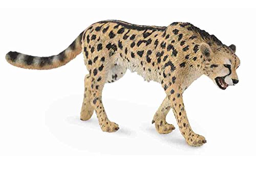 -. Feature : FUN FACT: King Cheetah's are extremely rare with a world population under 30 animals with only 10 of those believed to be in the wild in a few remote areas of Zimbabwe and Southern Africa. / EXPERT DESIGN: CollectA has enlisted the help of experts from around the world to ensure that every model is factually accurate and true to life, so little ones get to learn while they play. / SAFETY: All CollectA products are individually hand crafted with only the finest materials and rigorously tested to ensure they meet the highest safety standards. / EDUCATIONAL VALUE: CollectA's mission is to build "a natural world in miniature". Using role play, children gain a deeper knowledge of the animals. Excellent for educational purposes and for use in amas, pretend habitat scenes, or other displays. / PRODUCT SPECS: Wildlife King Cheetah figure measures 5.1" L x 2" H and is realistic and lifelike in every detail from its rare fur pattern mutation with spots that run together to form several black stripes down its back from the crest of its neck to the top of the tail.
