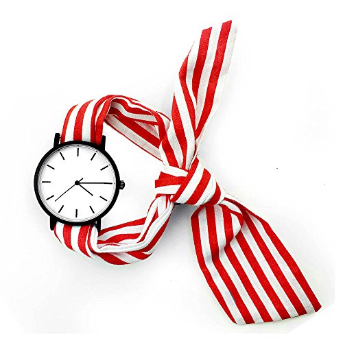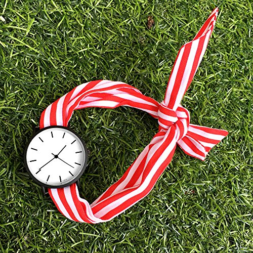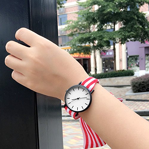 Lady gift simple stylish watch Enmex strappy cotton watch band fashion stripe style quartz wristwatch