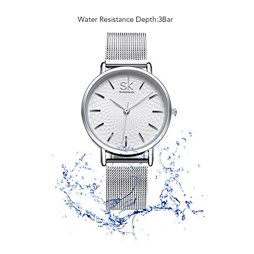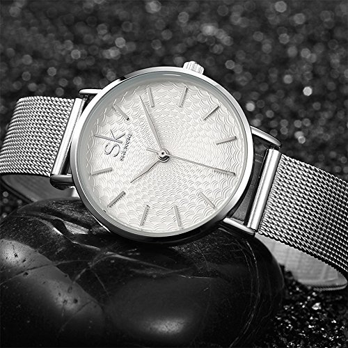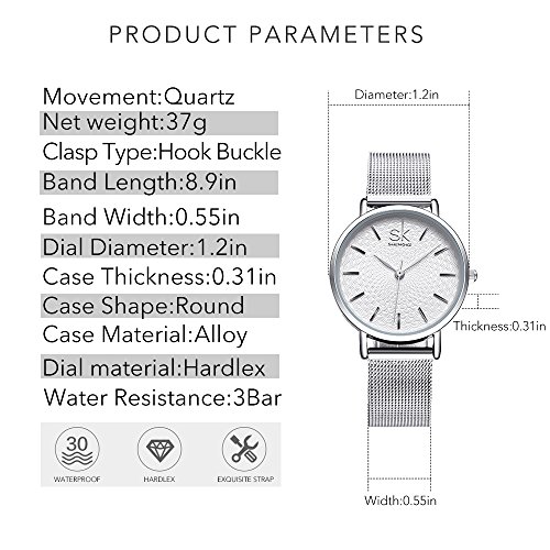 Best Watch for hard surface of the coated glass and stainless steel waterproof. Crowned stainless steel bezel in polished silver finishing with clear glass. Silver alloy case and stainless steel strap with adjustable hook-buckle clasp, no any hurt of clothes or hands. This watch with fashion dial analog display and silver alloy bracelet for women's daily wearing. If you're looking for a suitable and classic watch for women, you've found it.
