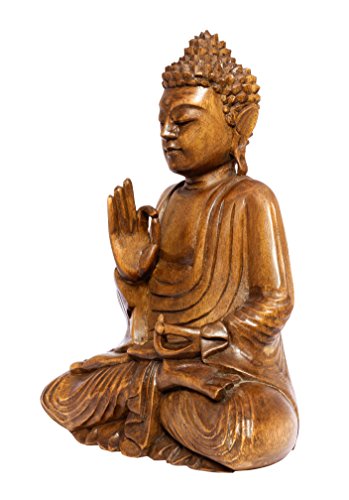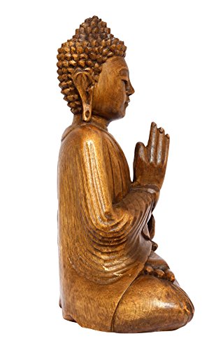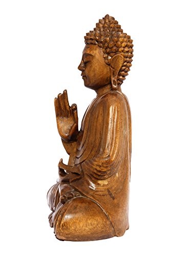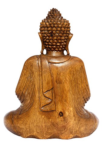 Handmade Wooden Serene Meditating Buddha Handcrafted Art Statue Sculpture Home Decor (12" Tall)
