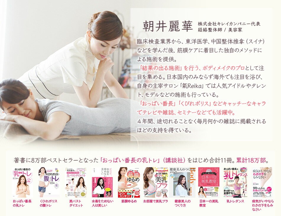 日本国内のみならず海外でも注目を浴び、自身の主宰サロン「気Reika」で、人気アイドル、タレントやモデルなどの施術を行っている