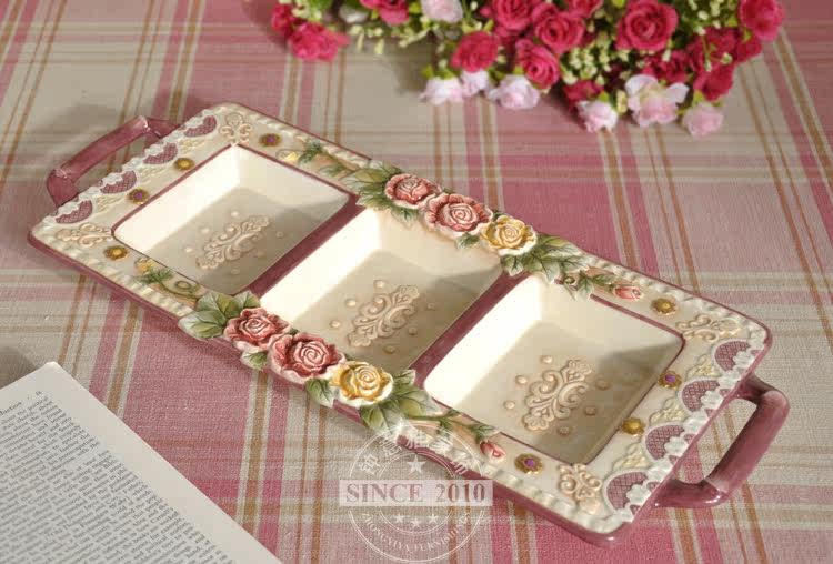 [Products]: underglaze painted ceramic sculpture baked. Very delicate hand-painted, glazed gloss is very bright, embossed roses set off more beautiful, but also very unique style for home very warm yo!