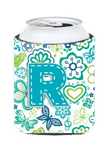 Letter R Flowers and Butterflies Teal Blue Can or Bottle Hugger CJ2006-RCC