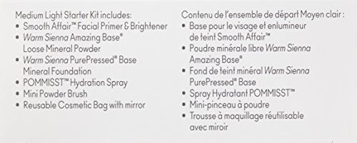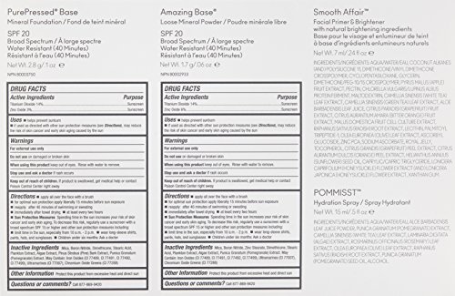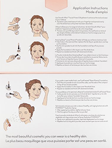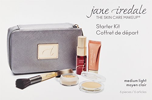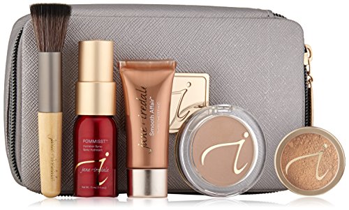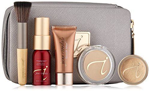 Discover the difference with these jane iredale essentials for amazing skin, bundled in a chic travel-size cosmetic case with extra-large mirror. A dollar 77 value, we've priced it at dollar 55 to make it easy for you to get started. Available in five shades: Light (Warm Silk), Medium Light (Warm Sienna), Medium (Golden Glow), Medium Dark (Latte), Dark (Butternut) to suit a wide range of skin tones. Healthy, radiant skin is easier than you think. Reveal yours with these simple steps. Smooth Affair is a luminizing primer that nourishes and prepares your skin: it brightens and moisturizes while makeup goes on more easily and lasts longer. Multi-tasking Amazing Base and PurePressed Base, which have earned The Skin Cancer Foundation's Seal of Recommendation, each provide four important functions in one: foundation, concealer, sunscreen and active skin care benefits. POMMISST hydrates, conditions and protects your skin. Use it to set your base and plump the skin. Product sizes: PurePressed Base: Net Wt. 2.8 g/.1 oz, Amazing Base: Net Wt. 1.7 g/.06 oz, Smooth Affair: Net Wt. 7 ml/.24 fl oz, POMMISST: Net Wt. 15 ml/.5 fl oz, Brush: 3.5" in length.