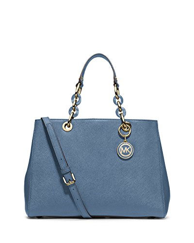 -. Brand : -. Color : Cornflower -. Department : womens -. EAN : 6887139827234 -. Feature : MICHAEL bag; Saffiano leather / Double handles with 6" drop; adjustable long strap with 18" drop / Magnetic snap closure; Gold-tone hardware; tortoiseshell rings at straps; logo charm / Inside features middle zip compartment, zip pocket, 3 slip pockets, cell phone pocket and keyfob / 12-1/2" W x 9-1/4" H x 5" D; Includes dust bag; Silhouette is based off 5'9" model; Imported -. Label : -. Manufacturer : -. ProductGroup : Shoes -. ProductTypeName : HANDBAG -. Publisher : -. Studio : -. Title : MICHAEL Cynthia Medium Satchel (Cornflower)