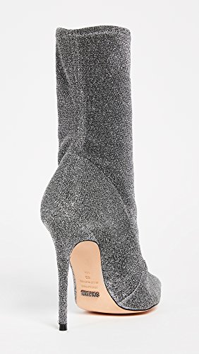 Product Description Metallic mesh add eye-catching style to these pointed-toe Schutz boots. A formfitting, sock shaft for an easy, pull-on silhouette. Covered, stiletto heel and leather sole. 0