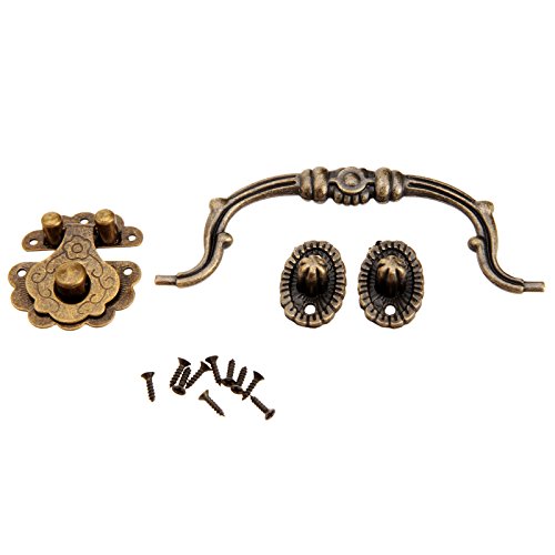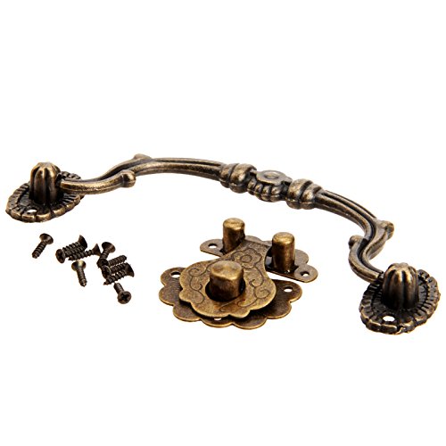 Dophee 1 Set Antique Furniture Decorative Cabinet Jewelry Box Latch Hasp and Pull Handle