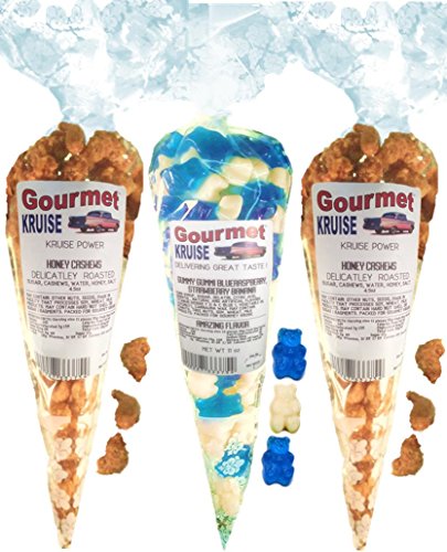 -. Title : Cashews (2) Honey Salted Roasted Delicately (1) Blue Raspberry White Strawberry Banana Gummi Gummy Bears (NET WT 20 OZ) Gourmet Kruise Signature Gift Bags