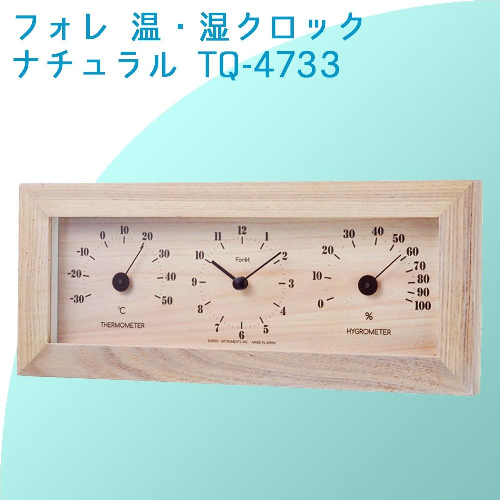 天然木ナチュラルテイストでインテリアにもおすすめ。置掛兼用で様々な場所に設置可能です。 製造国:日本 素材・材質:天然木 商品サイズ:約122×292×38mm 重量:約480g 仕様:置掛兼用(スタンド付)電源:単3乾電池1個 付属品:取扱説明書、保証書(保証期間:1年間)、単3乾電池1個 ※サプライヤー直送品 ご注文後5~6営業日後の出荷となります【商品名】EMPEX(エンペックス気象計) フォレ 温・湿クロック ナチュラル TQ-4733