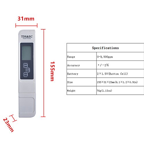 Boboai Digital Aid Professional Quality Water Test Meter. TDS, EC and Temperature Meter. 0-9990ppm. Accurate and Reliable Water Test Meter. Ideal For Drinking Water, Aquariums, Ponds.