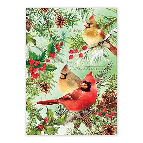 - Cardinals offer a bright flash of color against winter greenery in a design that Celebrates the natural beauty of the season