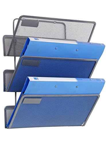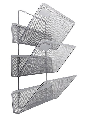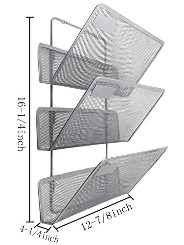 EasyPAG 3 Tier Assembly Wall Mounted Hanging File Organizer Mesh Metal Magazine Rack ,Silver