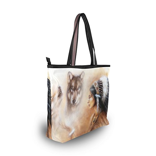 JSTEL Women Large Tote Top Handle Shoulder Bags Indian Woman Wolf Patern Ladies Handbag