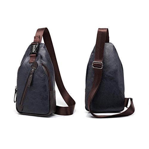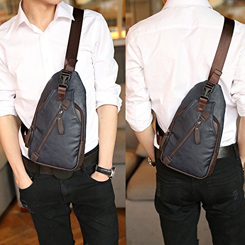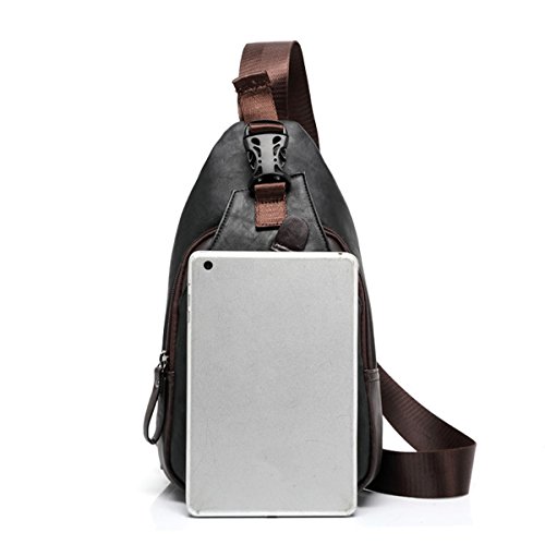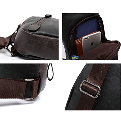 -. Feature : ✔Size: 6.3" L X 1.97" W X 11.42" H; Adjustable belt from 20" to 39"; Fit for your 【iPad Mini】,iPhone,Charger and small items. Not suitable for laptops and A4 books. / ✔Bag Structure: 1 Zipper Main Bag,1 Front Zipper Pockets,1 External Pocket. / ✔Material: Leather, canvas lining,Durable and smooth zipper. / ✔The messenger bag features a leather accented wide non slip shoulder strap which can be easily adjusted to preferred lengths. The bag can be carried by the hand handle, worn on the shoulder or cross-body / ✔Retro Men's Unbalance Chest Pack Multipurpose Backpack Crossbody Shoulder Bag. A great daypack for school, dating, shopping and traveling in daily life. Also could be carried for outdoor activities, running, cycling, camping, etc.