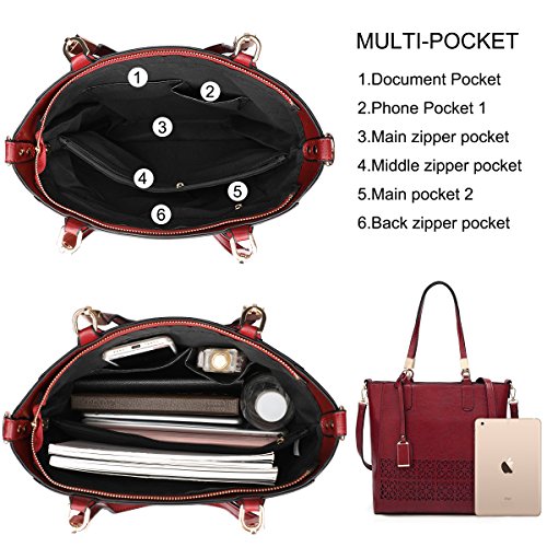 - Large Capacity: Interior: 1 middle zipper pocket, 1 side zipper pocket, 2 compartments open pockets for keys/card. Exterior: 1 back zipper pocket. It has plenty of space, easily holds a 11" laptop, IPAD, A4 paper, umbrella and other daily necessities