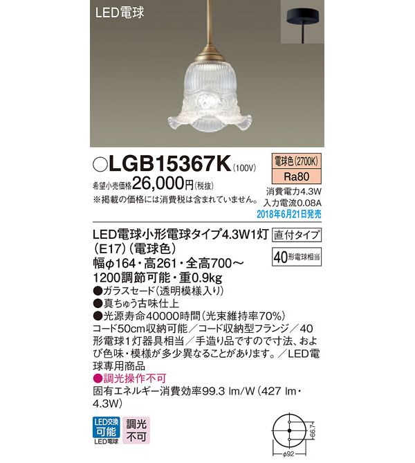 ●光源:LED電球小形電球タイプ4.3W1灯(E17)(電球色)、色温度:2700K、光源寿命40000時間(光束維持率70%)