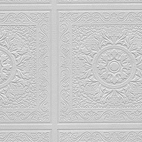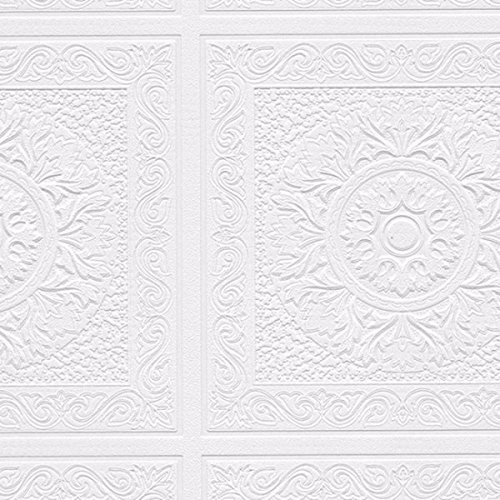 -. Title : Norwall Paintable Wallpaper Renaissance Ceiling Tile Raised White Textured 48931