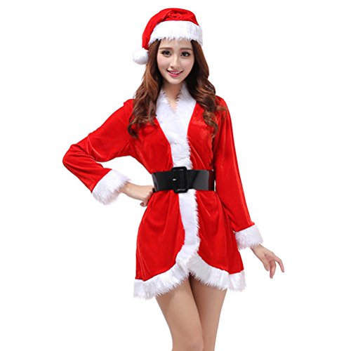 Tinksky 3Pcs Womens Santa Claus Christmas Costume Cosplay XMAS Outfit Fancy Dress Sexy Set Christmas Birthday Gift for friends women (Free Size)