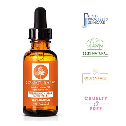 With its breakthrough Vitamin C + AHA, OZNaturals is setting a new standard in facial serums. This 2-in1 superstar serum delivers Vitamin C for skin, one of the most researched and proven antioxidants available, along with plant-based AHA in the form of glycolic acid. Vitamin C is well known for its ability address multiple signs of aging skin, including hyperpigmentation and uneven skin tone. In addition, it can help prevent future damage by combatting free radicals. AHAs have been shown to improve the appearance of wrinkles, brighten skin tone and soften and smooth the skin. When combined in our state-of-the-art serum, they address virtually every visible sign of aging skin. This advanced serum was made using proprietary technology which eliminates the need for chemical preservatives, along with emulsifiers, surfactants and PEGs that are ubiquitous among modern skincare lines. Our cold-process manufacturing system ensures the active ingredients maintain optimal potency. You will not find a purer, more efficacious natural C serum at any price. Guaranteed to give your face that youthful glow.Feature