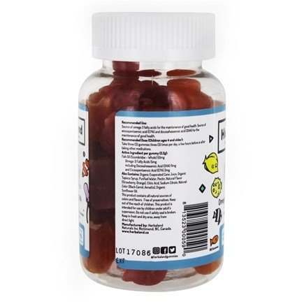 -. Title : Herbaland - Omega 3 with DHA & EPA Gummy Vitamin Supplement for Kids - Natural Flavor (Strawberry & Orange) - 60 Gummies - NON GMO, Halal, Gluten Free, Organic