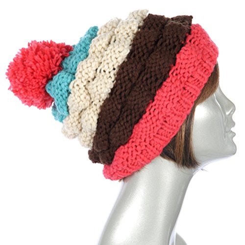 -. Title : Knitting Factory Winter Hand Made Hat Selection Pom Pom Three Tone Fashion Beanie