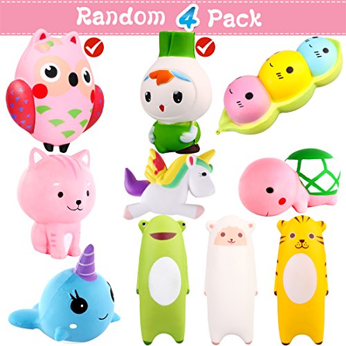 Studio : KeNeer Publisher : KeNeer Binding : Toy Product Description Suitable: 1, Gifts for Birthday, Merry Christmas, Valentine's Day. 2, Home or party decorations. 3, Release stress toys for kids or adults Features: 1. Material: non-toxic and safe, environmentally elastic PU 2. Color: multi-color 3. Pattern: super slow rising 4. Suitable for customers: more than 3 years old Package: Random 4Pack Squishies Jumbo Notice: 1. Can not eat, just a toy! 2, Children under 3 years old should be taken care of by parents to avoid accidental swallowing (Product Is NOT Edible). 3. If some items have a slight smell from the paint applied, this smell dissipates after a few days. 4. If some has dent. because of transportation, it will recover after a couple of hours.