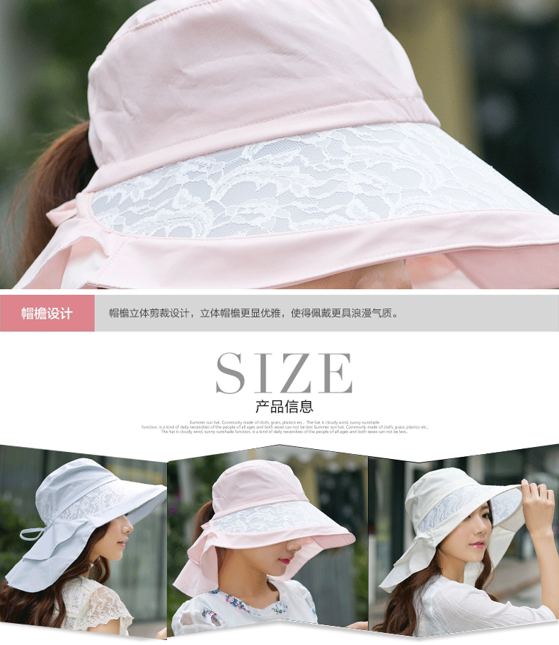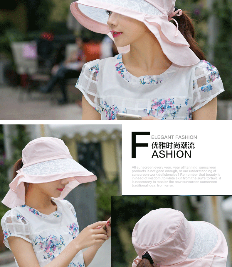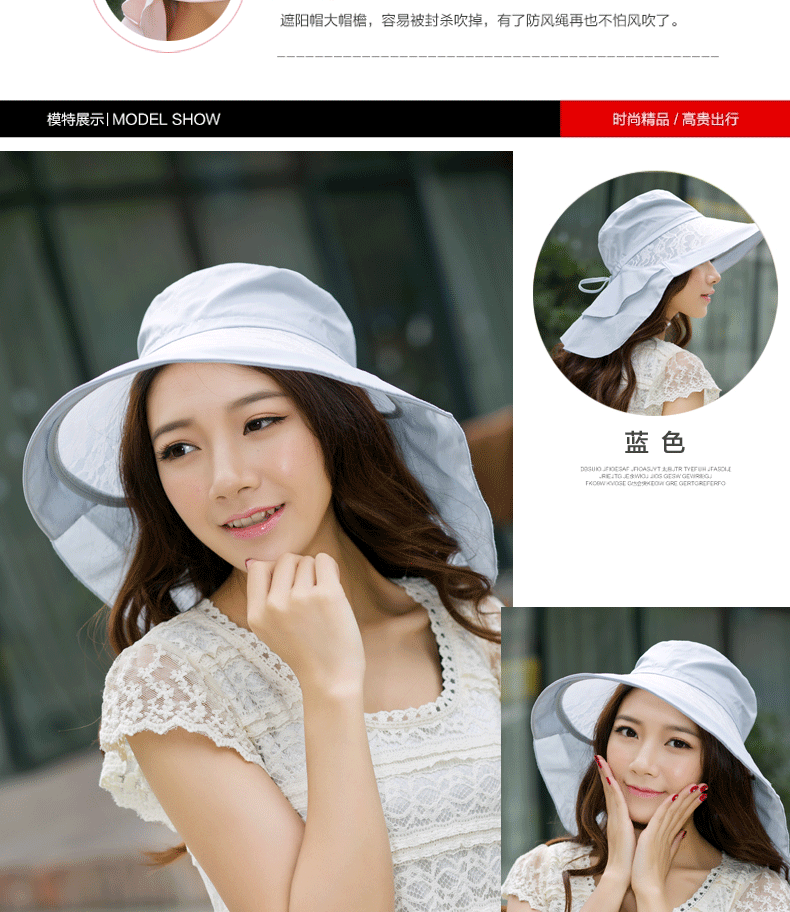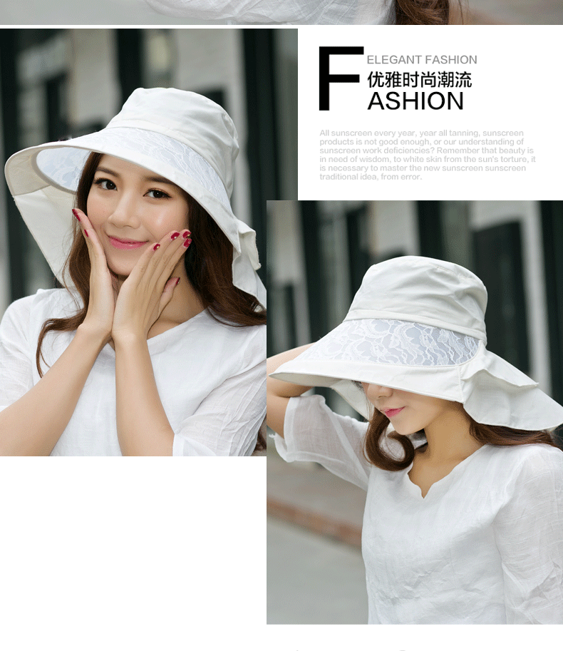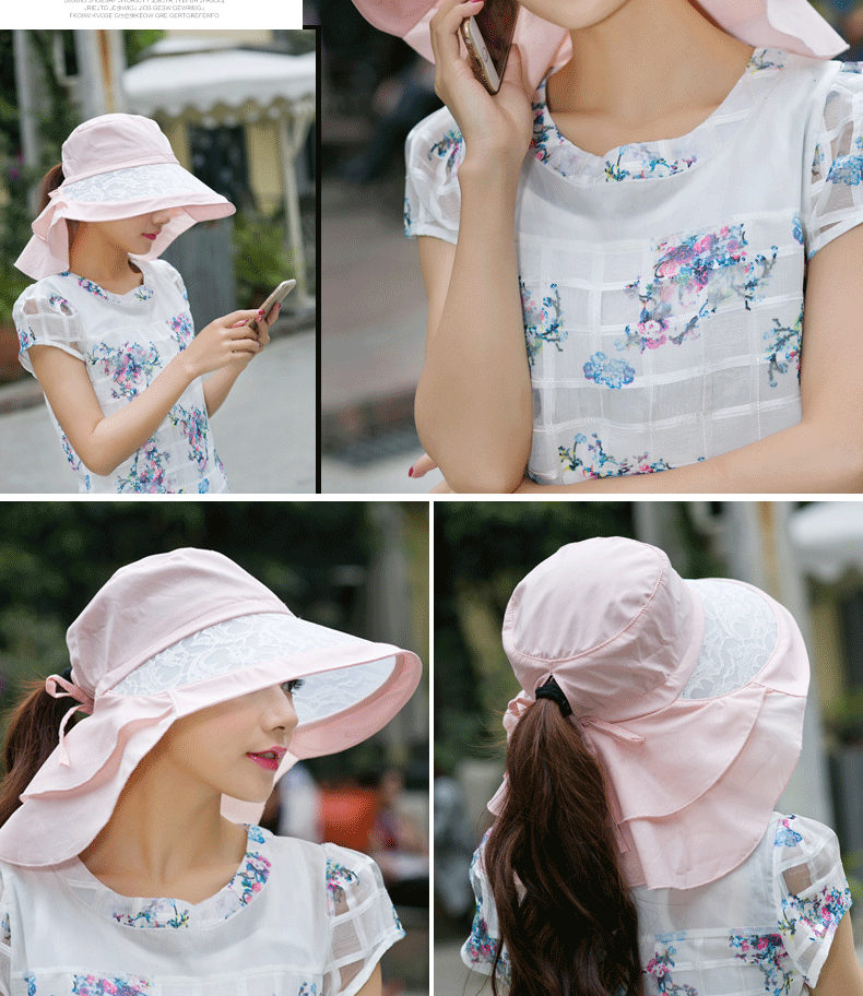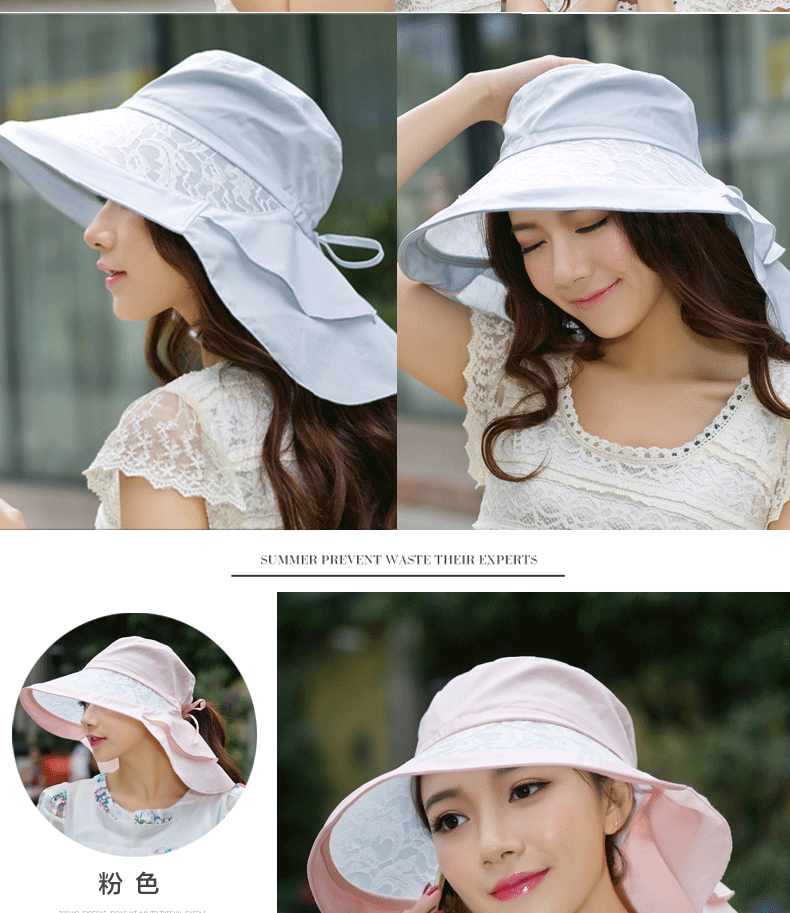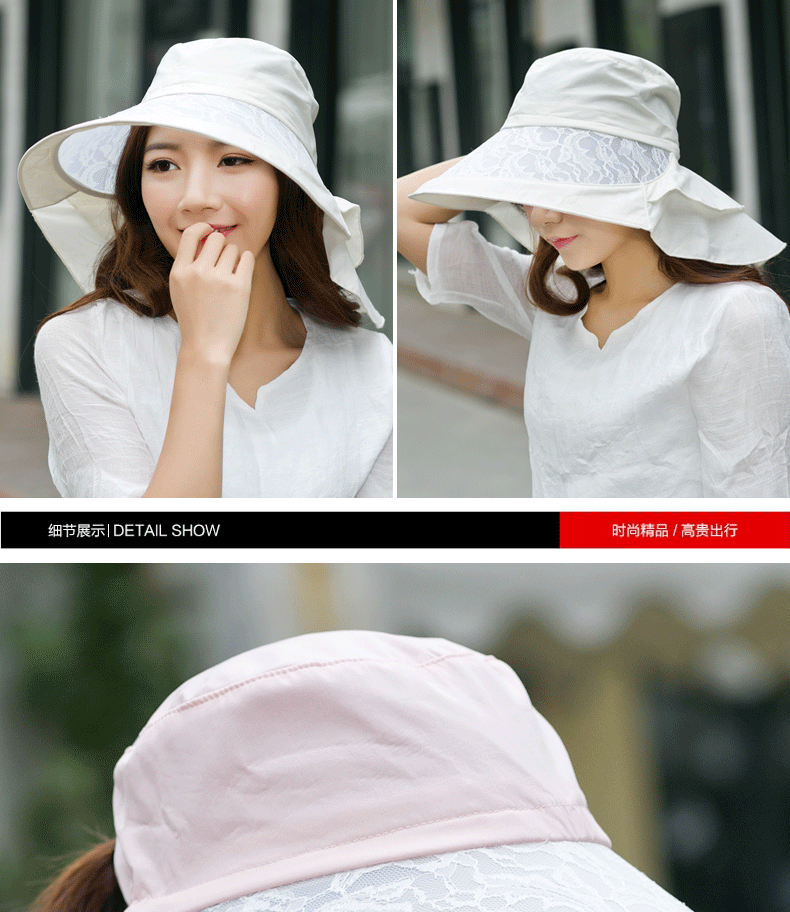 卓朵帽子女夏天防紫外线太阳帽 韩版可折叠遮阳帽 防晒大沿沙滩帽