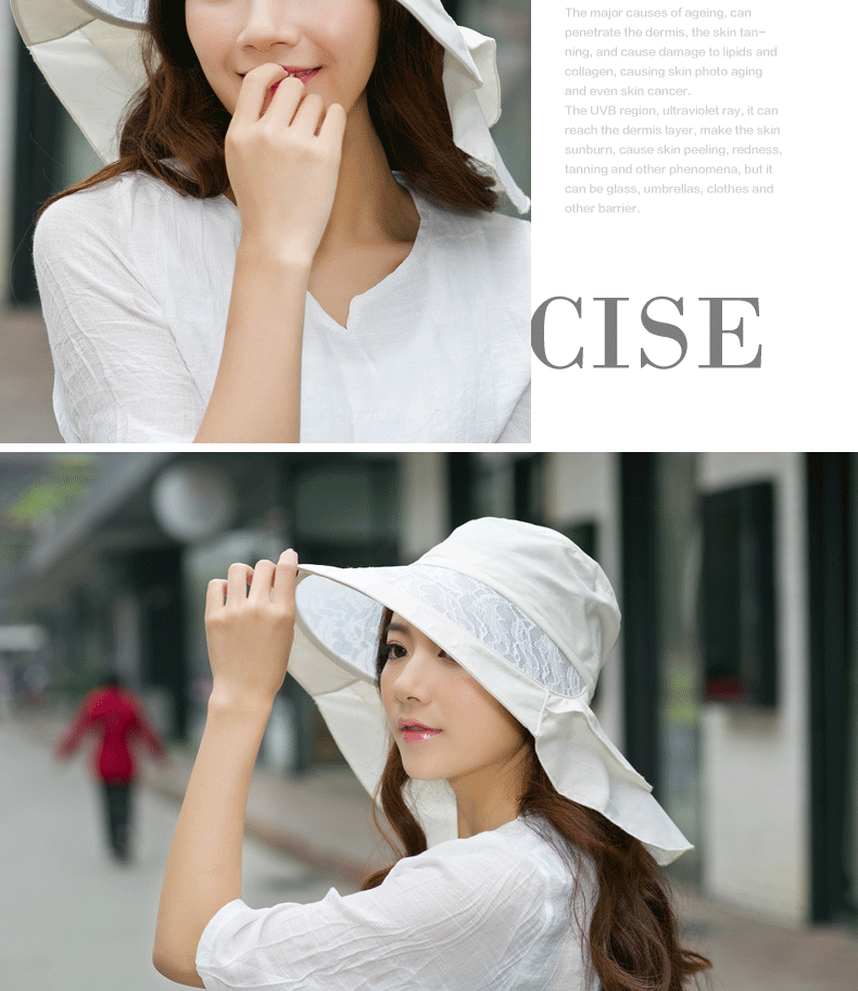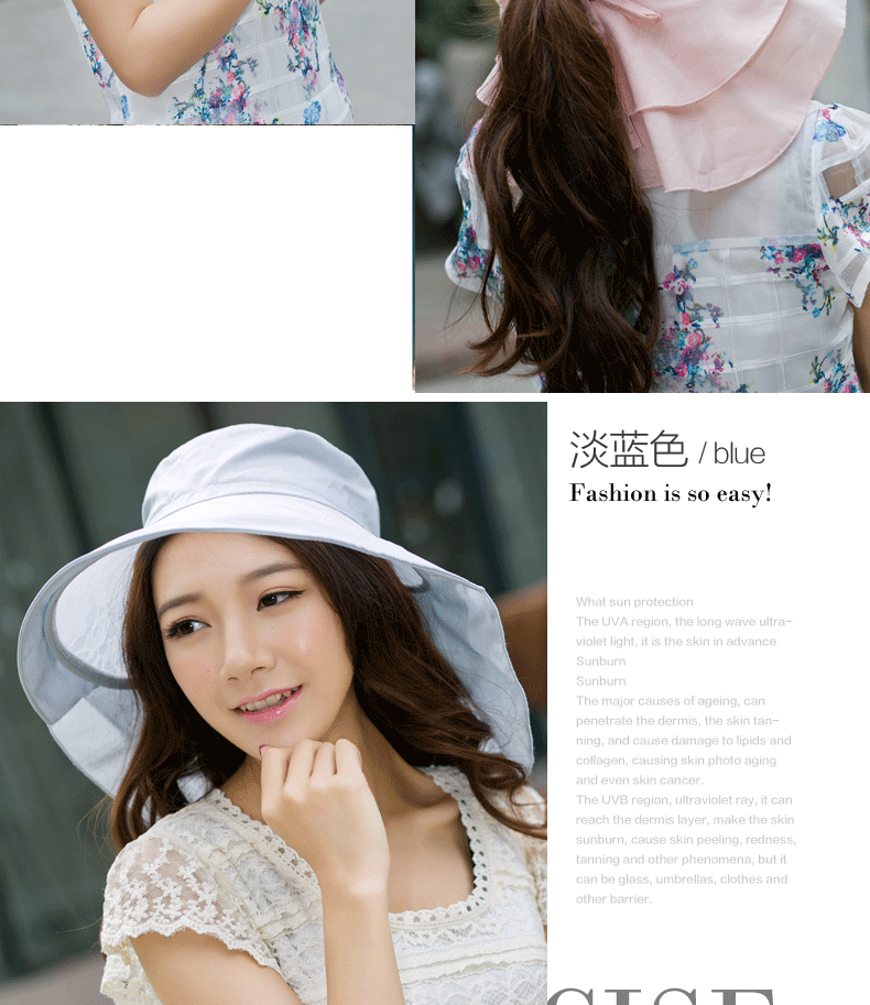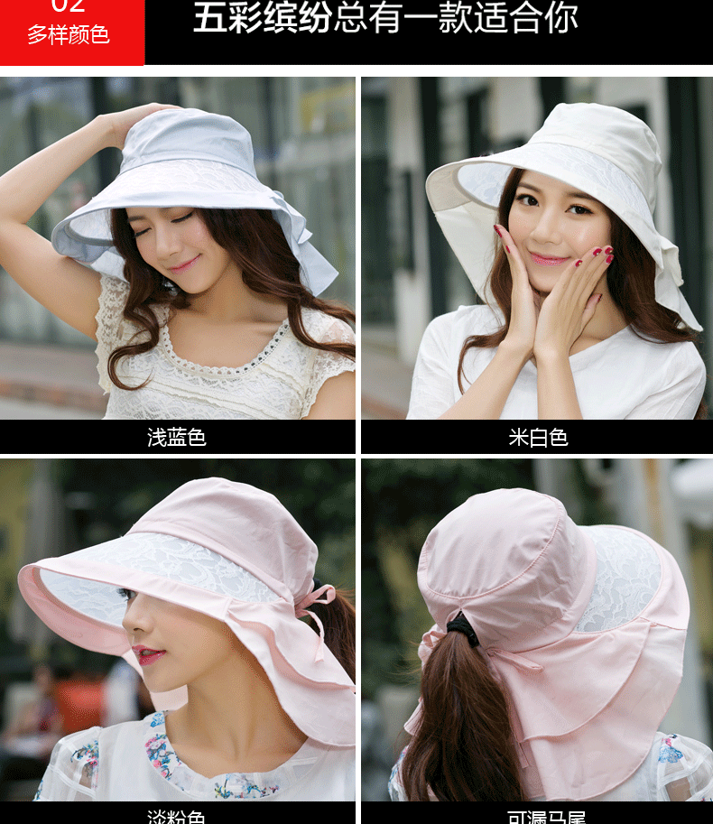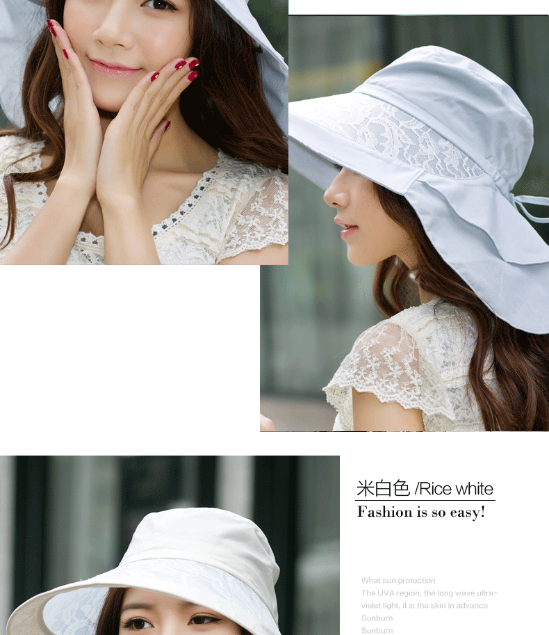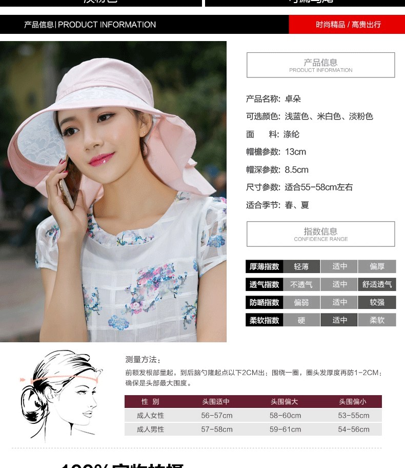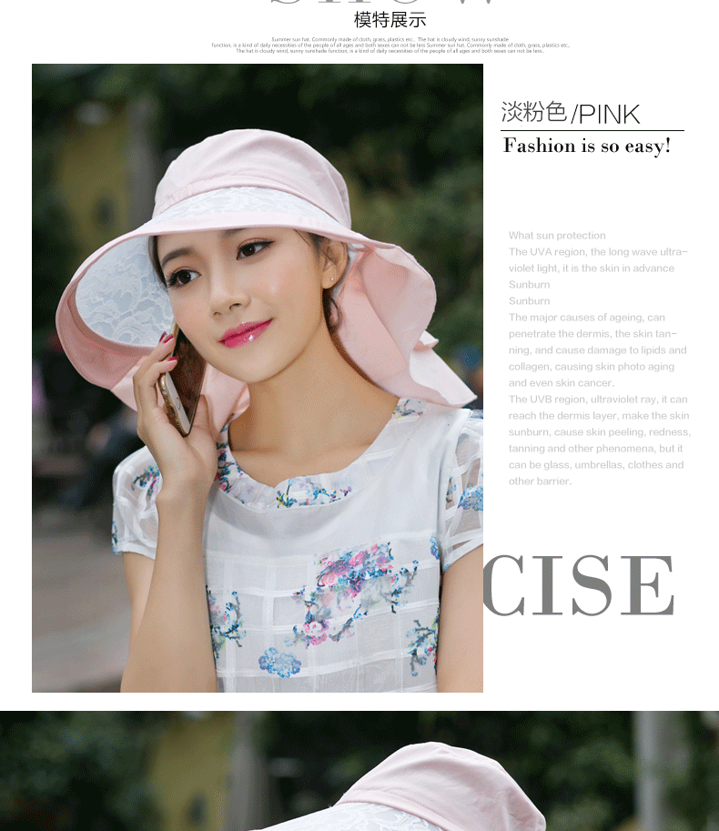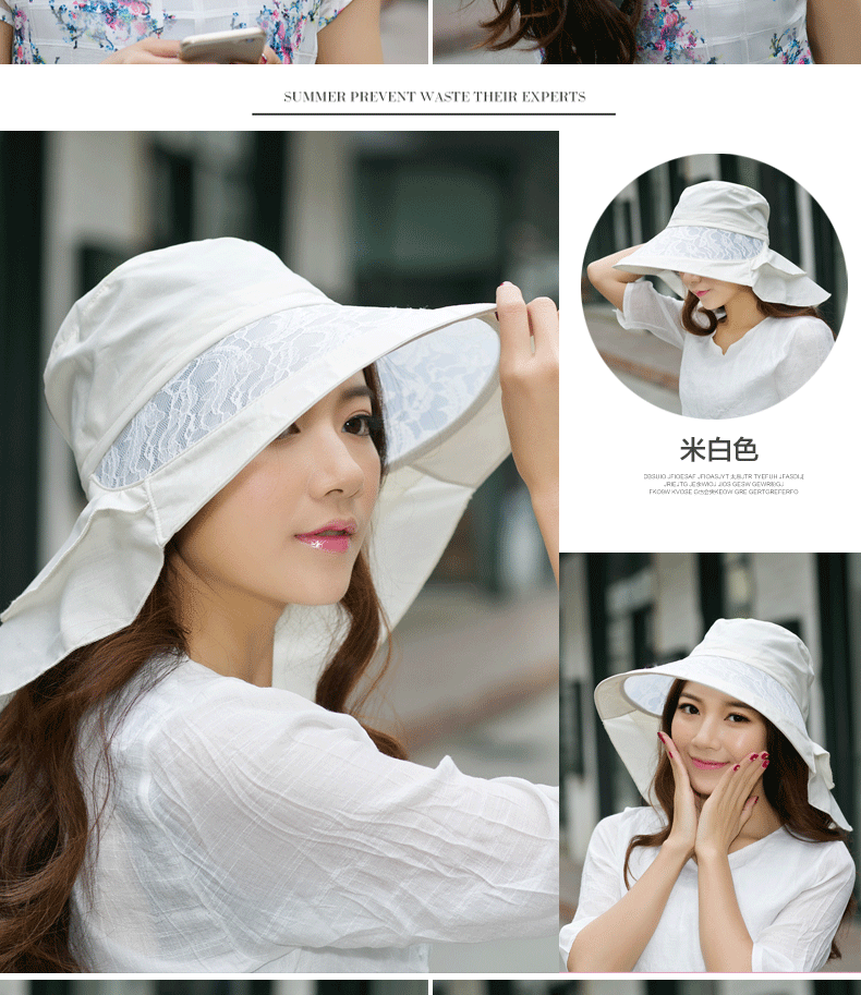 卓朵帽子女夏天防紫外线太阳帽 韩版可折叠遮阳帽 防晒大沿沙滩帽