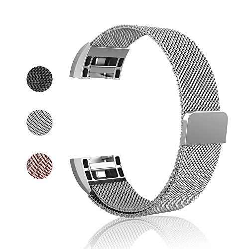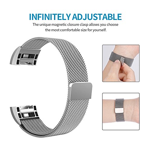 Fitbit Charge 2 Band-TENKER Adjustable Replacement Accessories Bands, Metal Wristband Band Strap - Stainless Steel Milanese Loop Metal Replacement Accessories Bracelet Strap