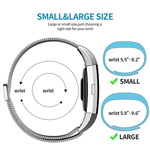 INFINITELY ADJUSTABLE LENGTH – Available in two infinitely adjustable sizes. The Fitbit Charge 2 replacement wristbands come in small (for 5.5"-8.2" wrists) and large (for 5.9"-9.6" wrists).