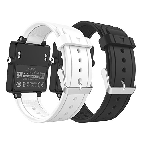 Garmin Vivoactive Watch Band, MoKo [2 PACK]Soft Silicone Replacement Fitness Bands Wristbands with Metal Clasps for Garmin Vivoactive / Vivoactive Acetate Sports GPS Smart Watch - BLACK & WHITE
