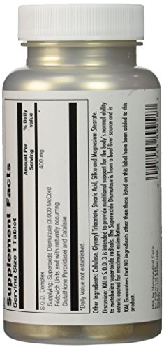 Suggested Use As a dietary supplement Use only as directed. Take 1 tablet an hour or more before meals. Store in a cool, dry place. - Or as directed by your healthcare professional. Supplement FactsServing Size: 1 TabletAmount Per Serving% Daily Value***S.O.D. Complex Supplying Superoxide Dismutase (3,000 McCord Fridovich Units and with naturally occurring Glutathione Peroxidase) and Catalase400 mg* *Daily Value Not Established ***Percent Daily Values are based on a 2,000 calorie diet