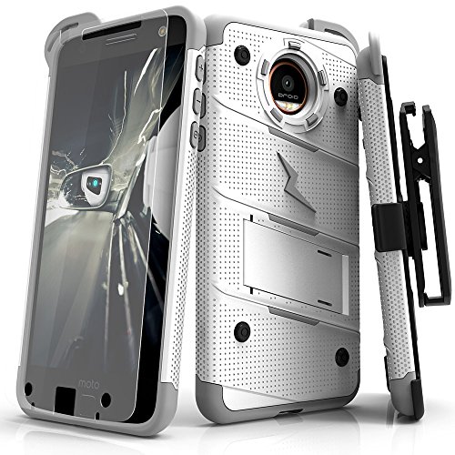-. Feature : Protection: The Zizo [Bolt Series] meets Military Grade 810.1-G Compliancy. Certified to protect your phone / Versatility: With up to 10 color variations to choose from, the Zizo Bolt Cover provides the perfect platform to express your style / Endless Possibilities: Equipped with a built-in kickstand, you can now enjoy your phone hands free / Motorola Moto Z Screen Protector: a Zizo [Lightning Shield] 0.33mm 9H hardness and 100% clarity Tempered Glass Screen Protector is included free with every purchase / Motorola Moto Z Case: The Zizo [Bolt Series] is compatible with the Motorola Moto Z ONLY (this case IS NOT compatible with the Motorola Z Force or Motorola Z Play)