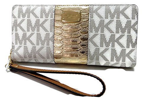 -. Binding : Apparel -. Brand : Michael Kors -. Department : womens -. Feature : Interior features zip pocket, three inner pockets, and 16 card holders / 8.25"L x 1.5"W x 4"H / Removable wristlet strap; 7" / Zip closure; lined -. ProductGroup : Apparel -. ProductTypeName : ACCESSORY -. Size : One Size -. Title : Michael Kors Center Stripe Travel Continental Zip Wallet PVC