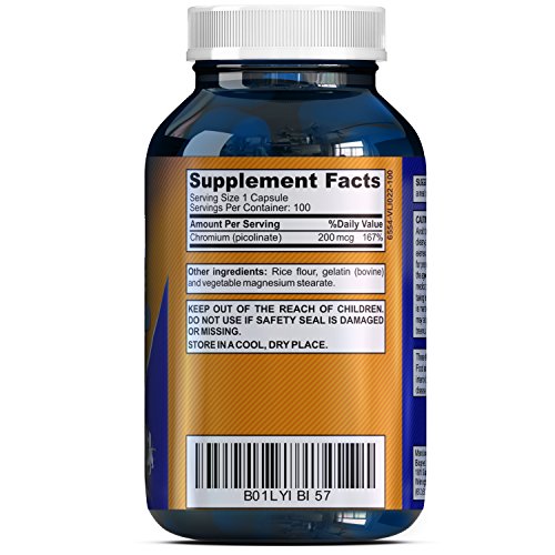 200 mcg Chromium Picolinate Metabolism Supplement - Chromium Function Support - Trace Mineral Metabolize Carbs Fat Protein - Weight Loss Pills -...