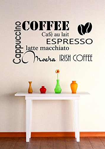 Design with Vinyl Zzz 7251 Coffee Cappuccino Espresso Mocha Latte Kitchen Stylish Wall Decal Home Decoration Picture Art, 12 x 18-Inch, Black