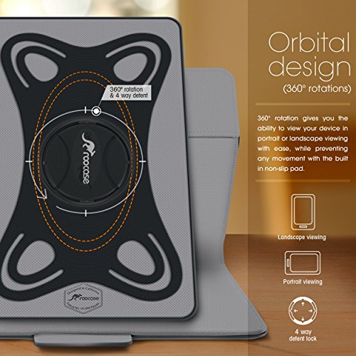 rooCASE Orb Folio Case for Universal 8.9 to 10.5 Inch Tablet, Leather Cover with Stand - Compatible with Samsung Galaxy Tab, Kindle Fire HDX 8.9, Nexus 9, ASUS Transformer Pad TF103, Canvas Gray