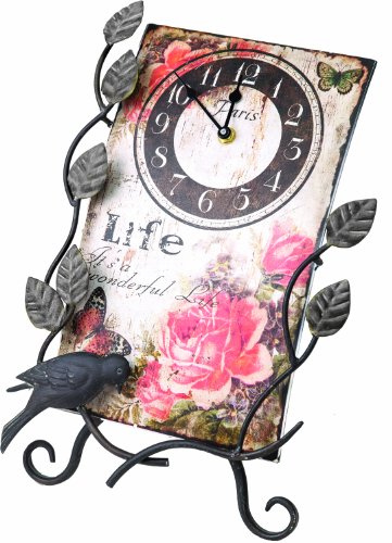 Metal clock with hand painted antiqued look